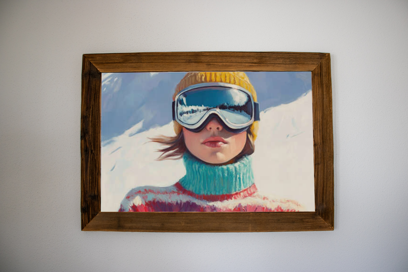 Wandbild mit Altholz und Metallrahmen Maße Höhe x Breite 40x40cm Tiefe 12cm Bild: Skifahrer